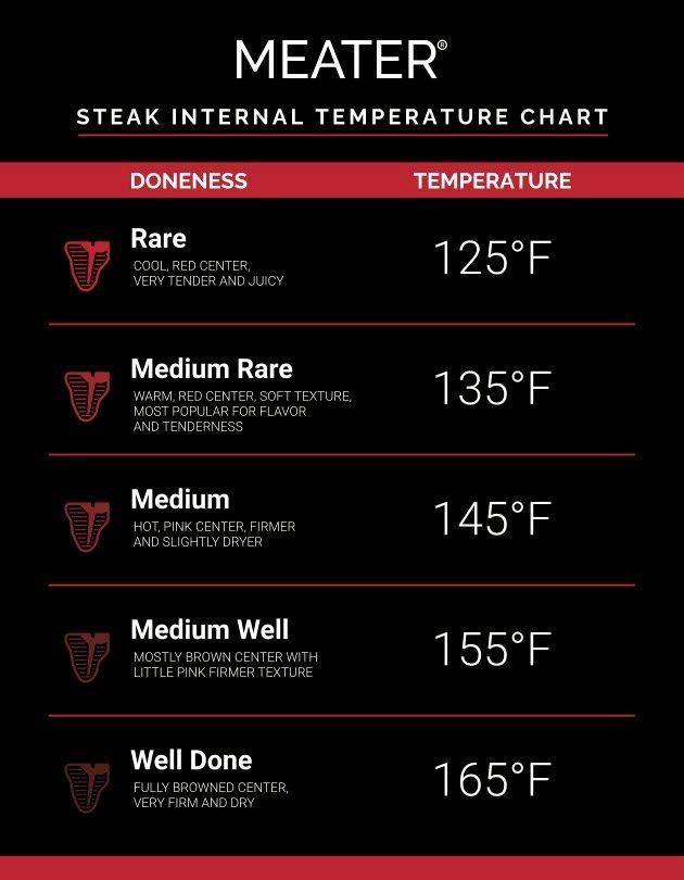Every steak lover has their preferred doneness level, but the magic comes from precision. MEATER and most steakhouses recommend pulling the steak at 135°F for medium rare steak since it balances flavor and tenderness perfectly. That said, you can explore a range of different internal temperatures depending on your preference.